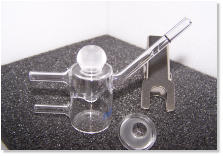 #4G-01-00-09-05 beschreibt eine ummantele Zelle, mit konischem Flansch, in klarem Glas, mit einer 9mm Öffnung und 5ml Volumen.